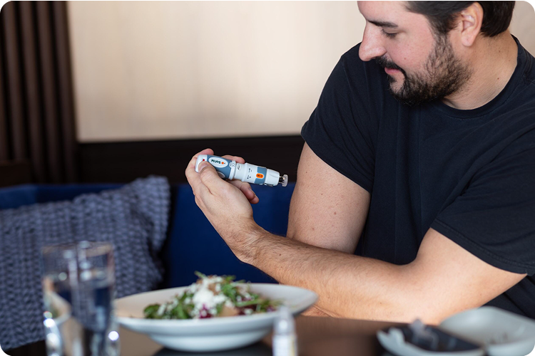 InsuJet™ pushes insulin under high pressure through a very fine orifice, creating a microjet capable of crossing the skin barrier and ensuring homogeneous diffusion into the subcutaneous tissue.