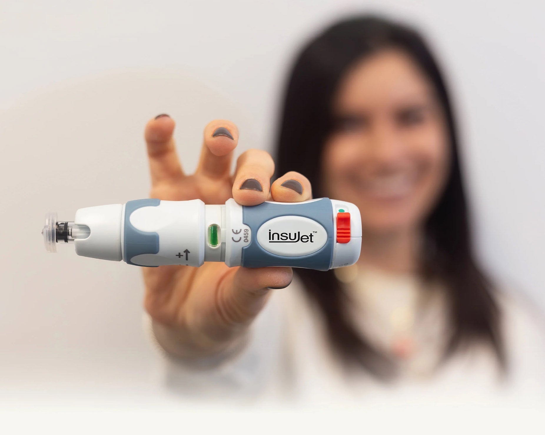 InsuJet™ is a new insulin delivery alternative for people with diabetes with unmet treatment needs: those with a high BMI who struggle to control hyperglycemia; those for whom pump therapy is not suitable and who do not wish to return to insulin pens; and those who delay starting insulin therapy due to fear of needles.